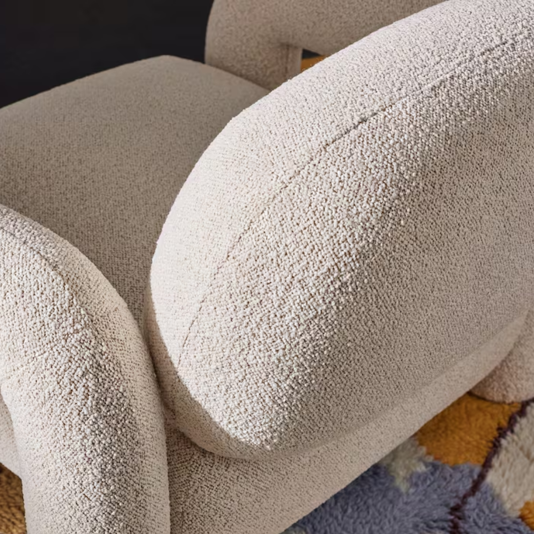 The Bobo Accent Chair is a collaboration between renowned Spanish artist Omayra Maymo and skilled designer. Made with a Cotton & Linen blend fabric, this statement piece features a modern, sculptural shape and chunky upholstered arm detail. With a low and wide profile, it brings a touch of stylish comfort to any room. Height 69cm | Width 95cm | Depth 87cm