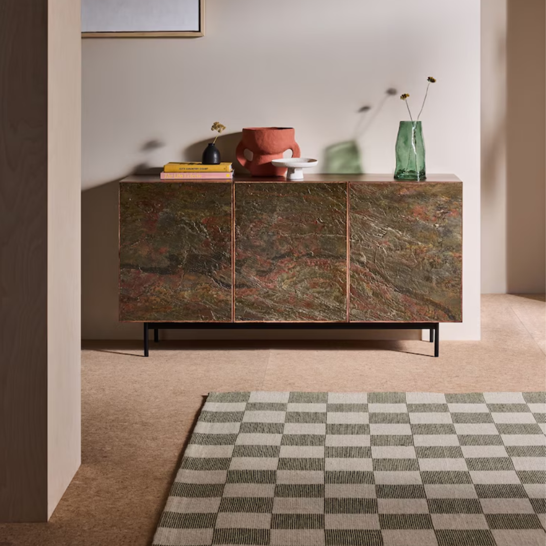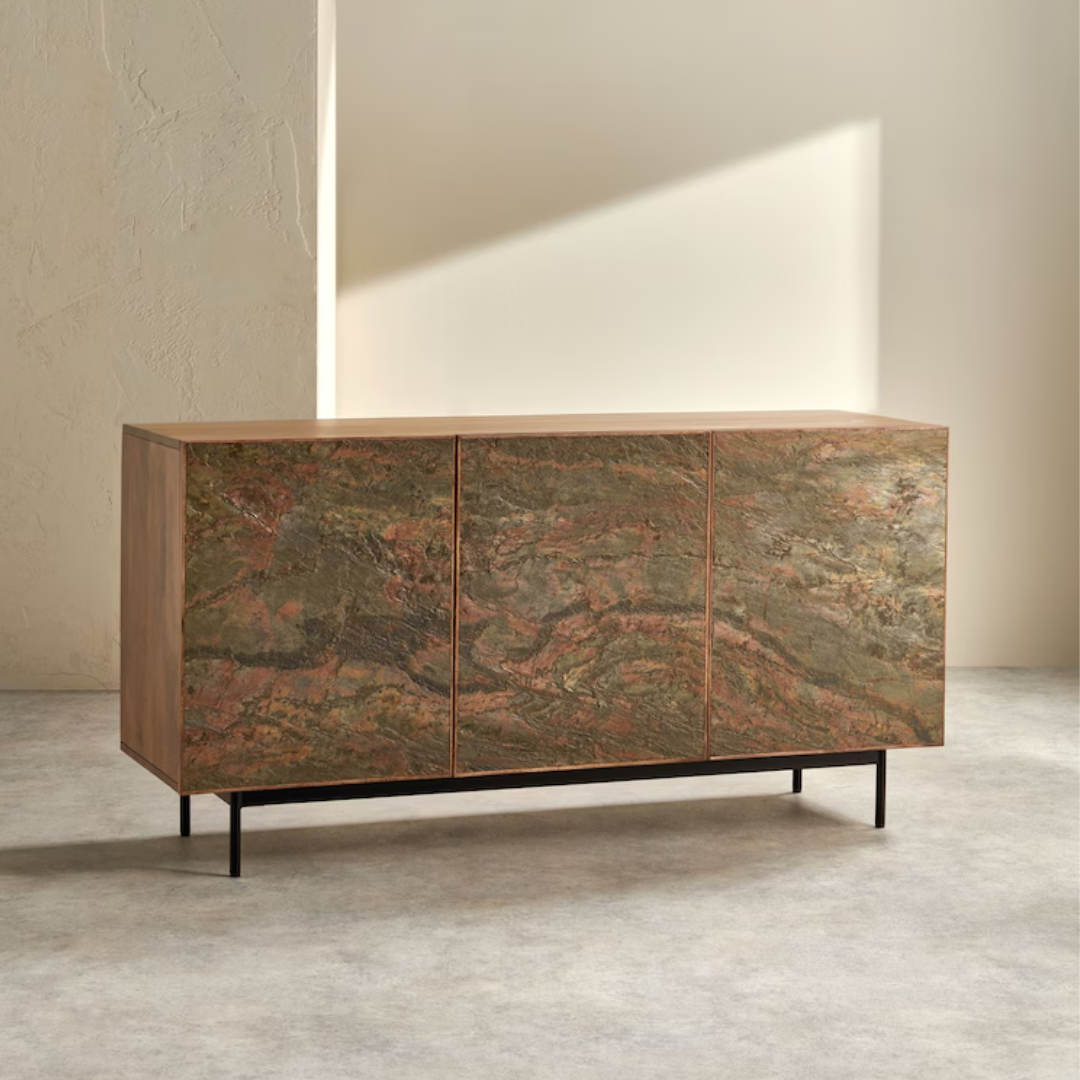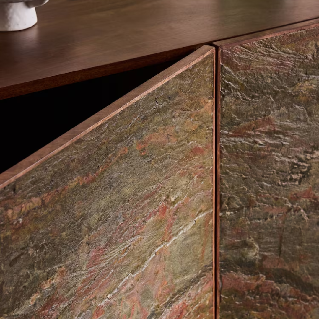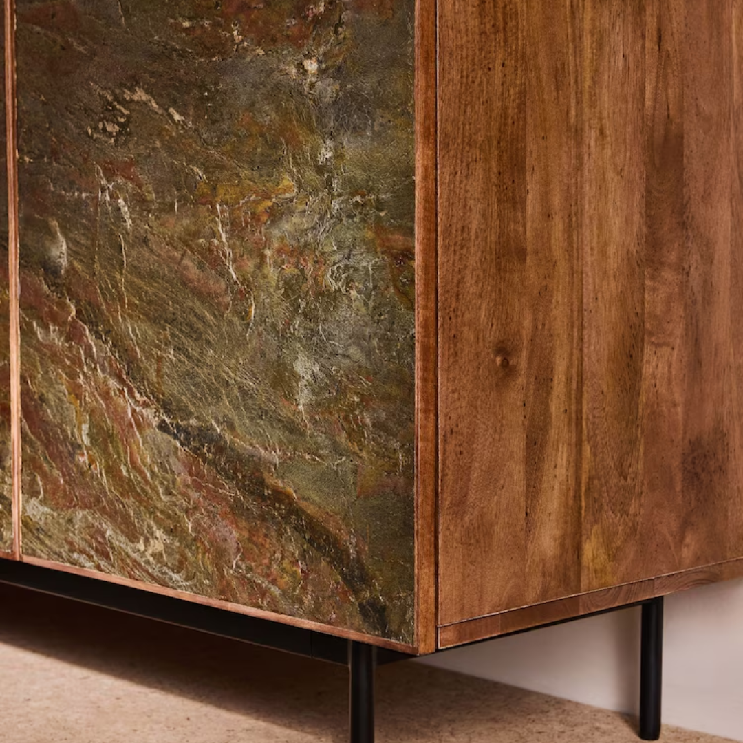 Natural elegance meets modern craftsmanship. The Dilan Large Sideboard blends rich mango wood with a sleek stone veneer top for a striking contrast. With generous storage and a timeless design, it’s the perfect balance of style and function for contemporary interiors. Height 75cm | Width 147cm | Depth 45cm
