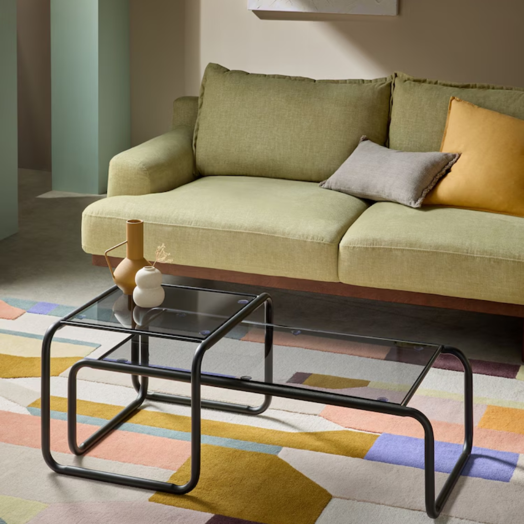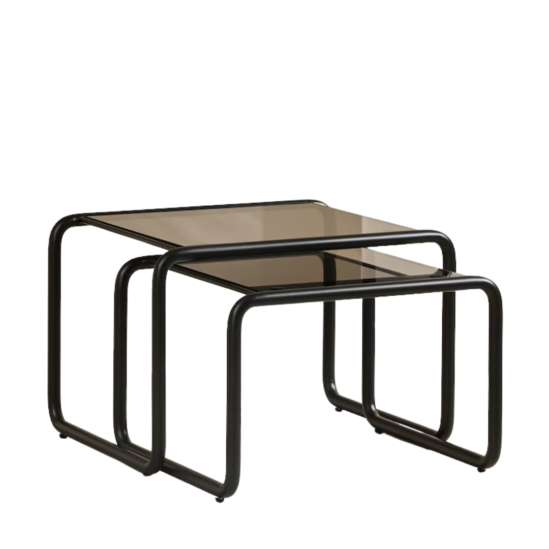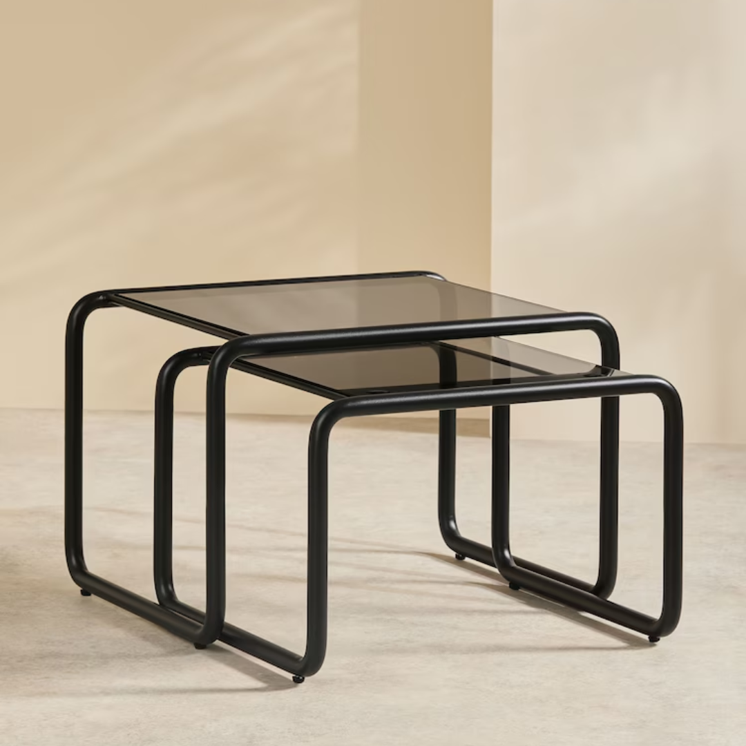 Discover the perfect coffee table with Duston Coffee Nest. Its rounded metal frame and multi-dimensional finish create a sophisticated and durable design. Plus, the glass tops add a touch of elegance to any living space. Say goodbye to your endless search for a stylish yet functional coffee table. Height 50cm | Width 105cm | Depth 30cm