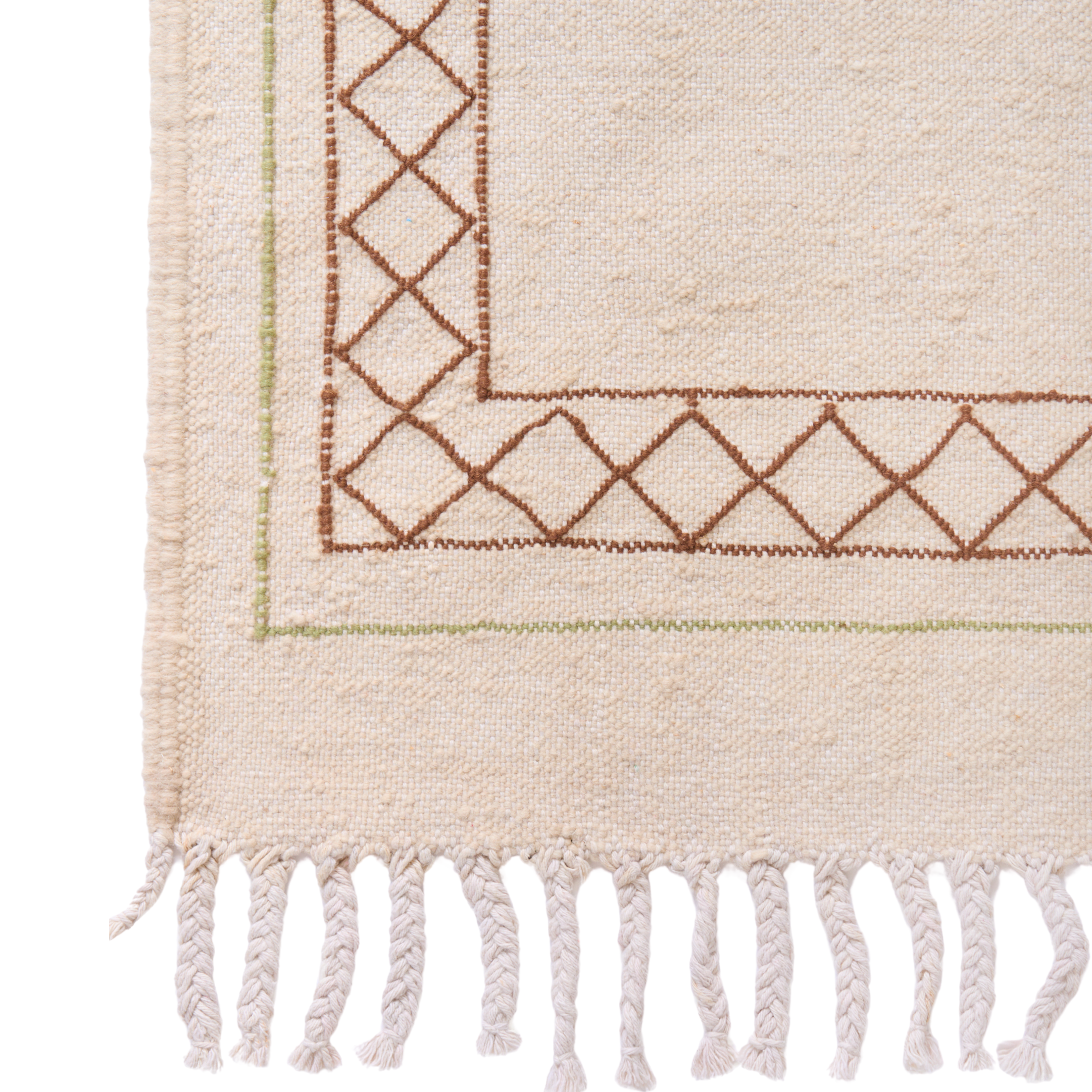 Description Flat-woven rug from the high end Moroccan Atlas wool with cotton blend. Rug has been made using traditional Moroccan vertical looms. An elevated essential, featuring a lighter but robust profile with a rustic feel underfoot, adorned with indigenous Amazigh motifs that bring a sense of calm whilst telling a bigger story. 75% Wool + 25% Cotton. Dimensions Width 300cm | Length 200cm