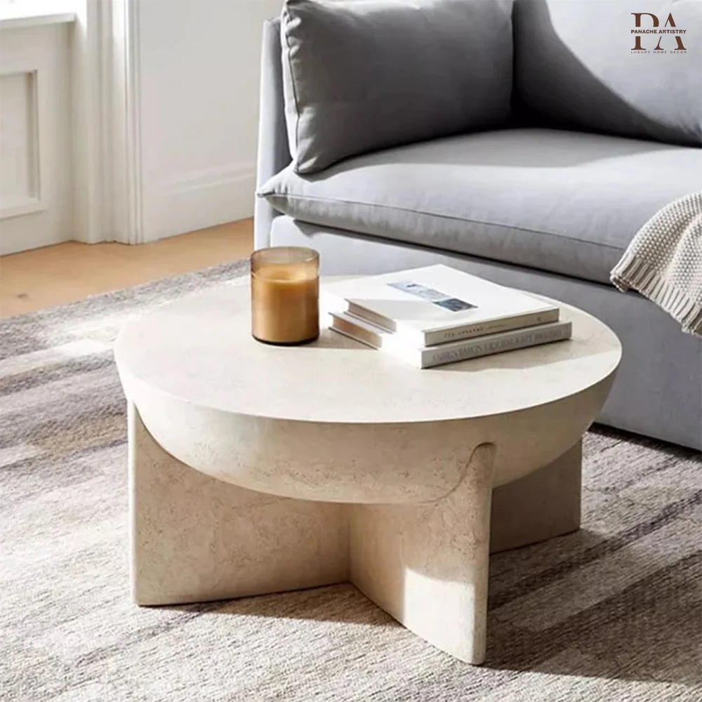 Arvo Sculpted Coffee Table Panache Artistry Arvo Sculpted Coffee Table. Sculptured solid organic stone coffee table. Exudes elegance, sophistication and luxury - perfect for a minimalist space. Height 36cm | Diameter 76cm